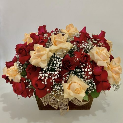 CAXÊPO DE MADEIRA COM 40 ROSAS