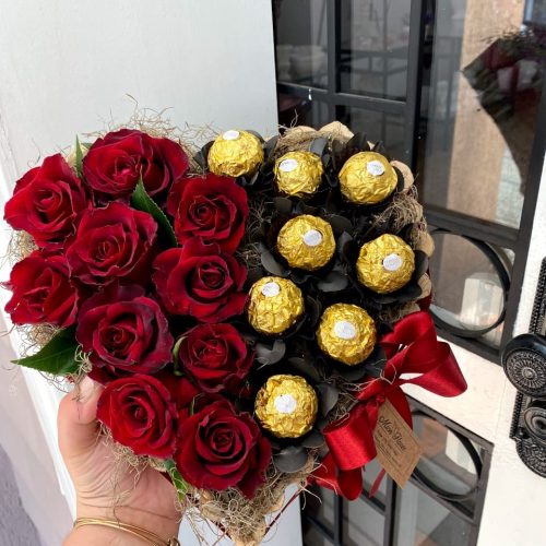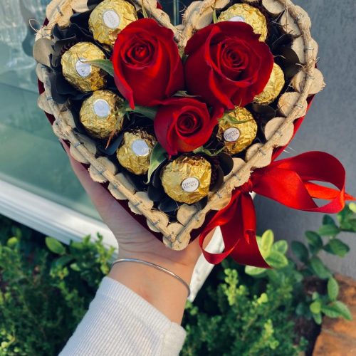 CAXÊPO DE MADEIRA COM 40 ROSAS