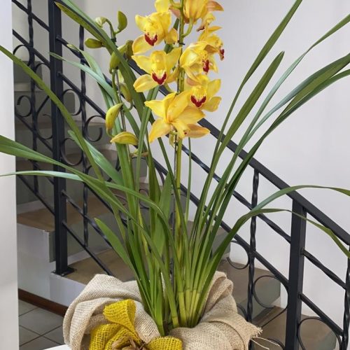 ORQUÍDEA CYMBIDIUM NA EMBALAGEM RÚSTICA